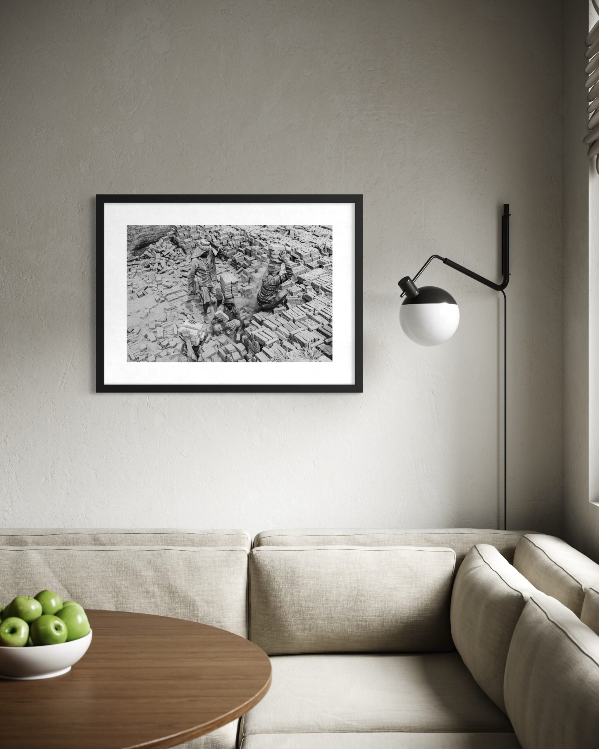 - Printai rėminami į medinius juodos spalvos rėmelius, printą paklijuojant ant kieto popieriaus tam, kad šis nesibanguotų.